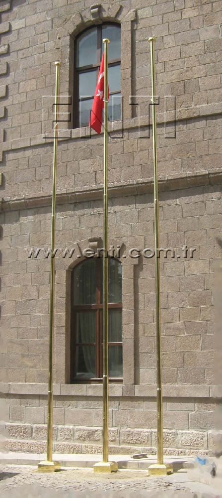 Our brass flag poles are manufactured of combining brass tubes gradually together. For taller brass poles, a steel support is mounted inside to consolidate for more substantiality. The brass flag poles are designed to withstand wind speed of 130 km/hr and on the field of3, 5m2. According to the customers' demand, the custom projects of large dimensions are manufactured to withstand big flags. The ground basic projects and static figures are prepared as project then presented to our customers in accordance with the customers demand.