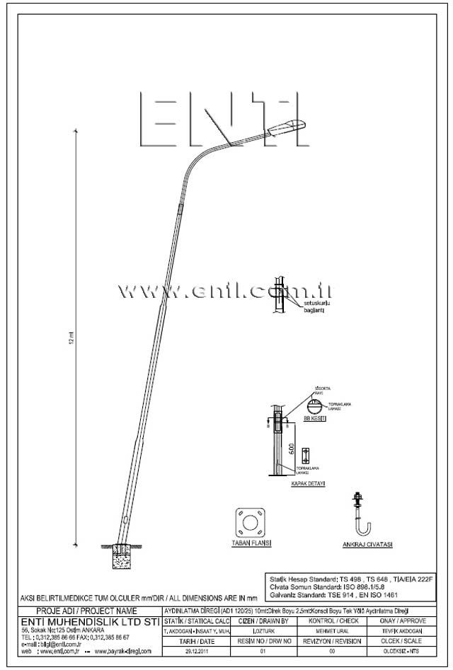 ENTİ Engineering produces lighting poles standing very smart as visually, providing an efficient illumination and assisting to support architectural infrastructure in addition to polygonal and tubular type enlightening poles.