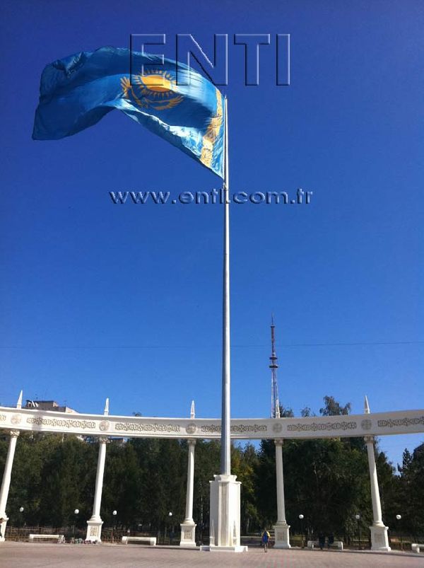 According to the customers demand, ENTI engineering produces giant flag poles at the dimension of 18m to 150m by nesting tightly polygonal modules (slip-joint) in to one another as galvanised or stainless steel by its competent staff. Our Giant Flag Poles are designed to withstand according to the wind speed of 160 km/hr and 50 sq/m2 to 2000sq/m2 flag surface. According to the customers demand, the ground basic projects and static figures are prepared as project then presented to our customers. Being aware of that the flag is important for every nation, Our Company shows important and meticulous works on the orders received.