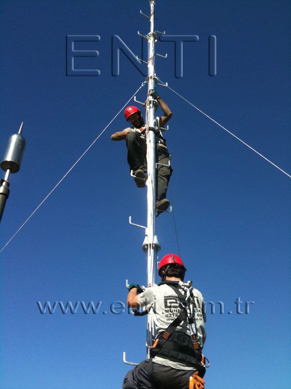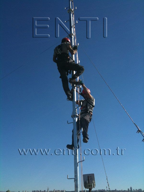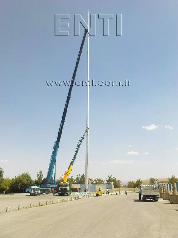 The crane which will be used for mounting may vary depending on the circumstances and the pole. At the normal circumstances, a crane which has minimal boom length of 25 m for the pole of 30 m length is needed. The crane boom may be prolonged up to the 50 m long according to the fields' circumstances.