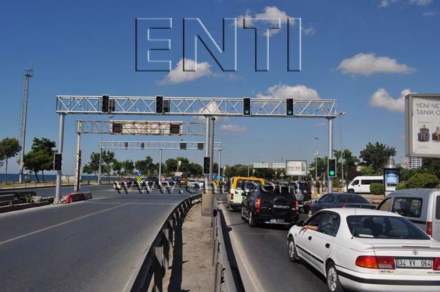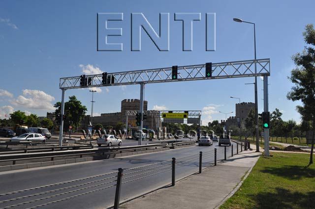 The overhead poles may be used for the traffic lamp poles besides the reading plates and mounting the security cameras. |