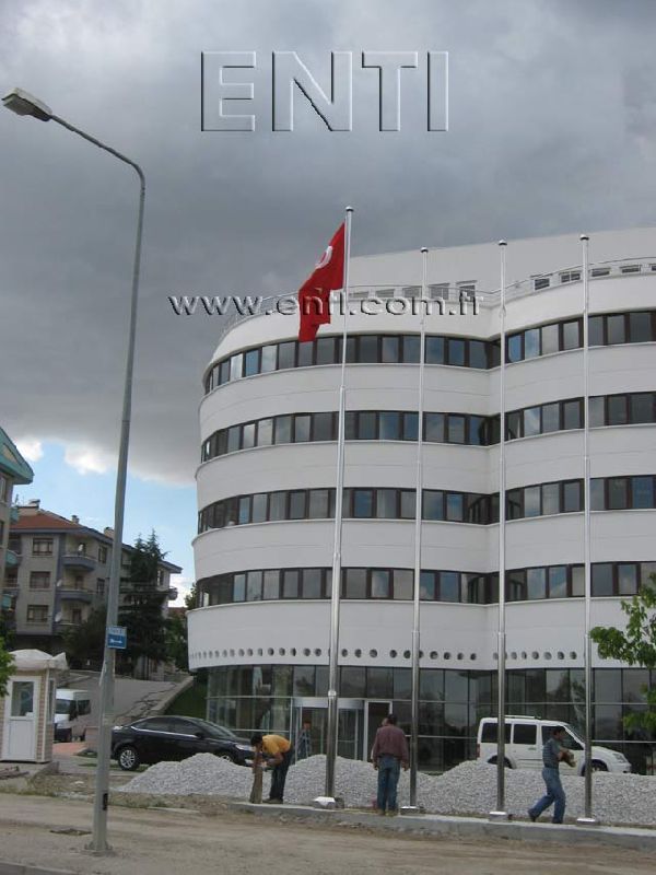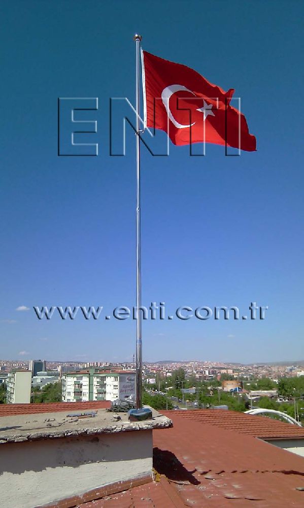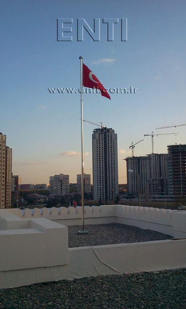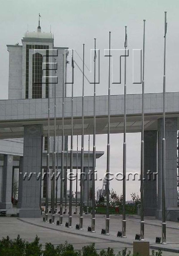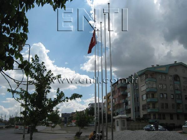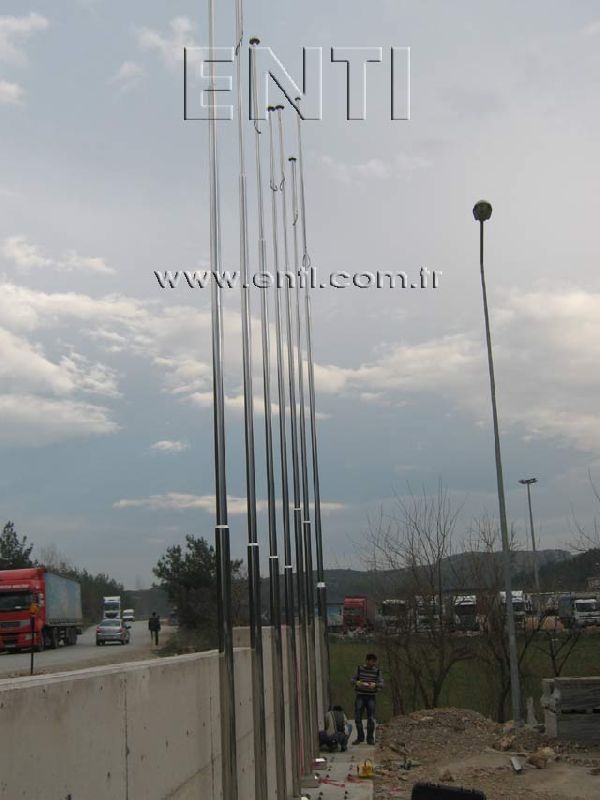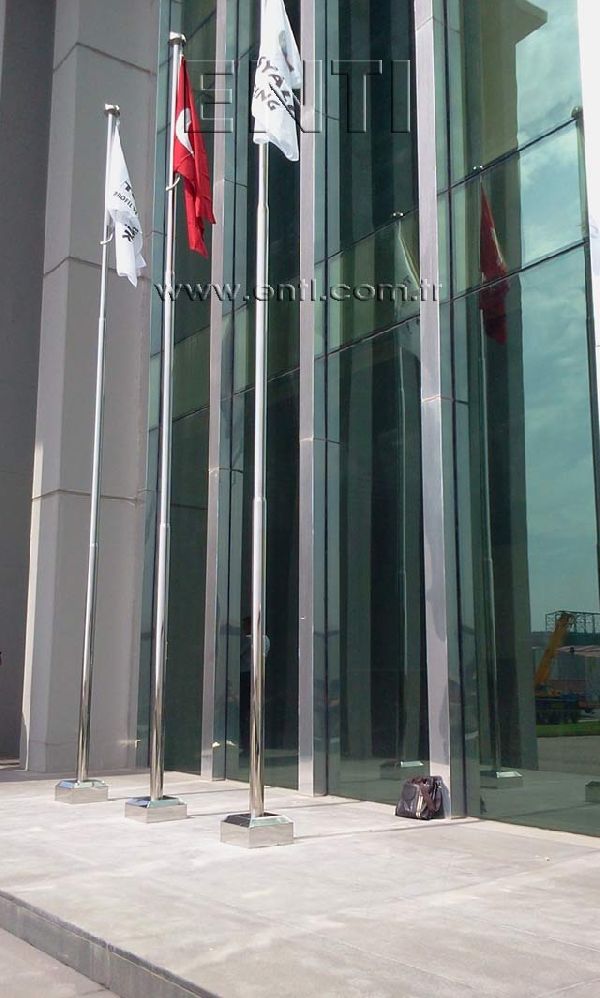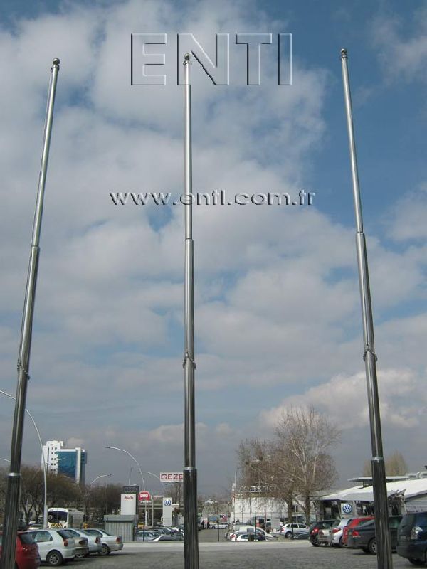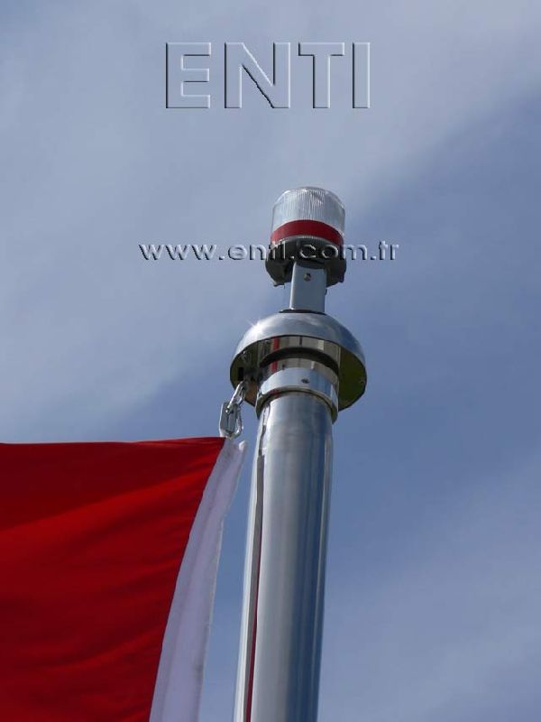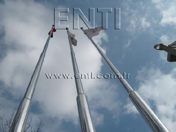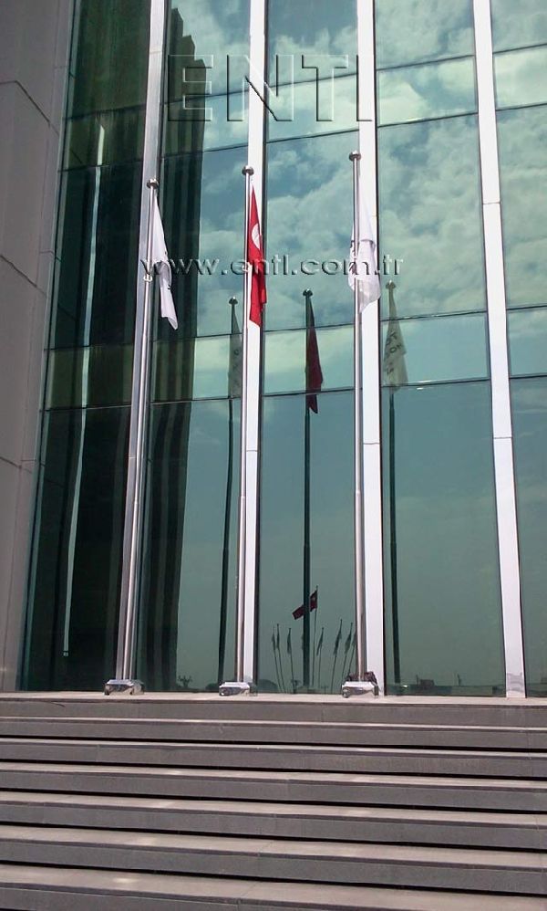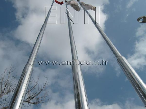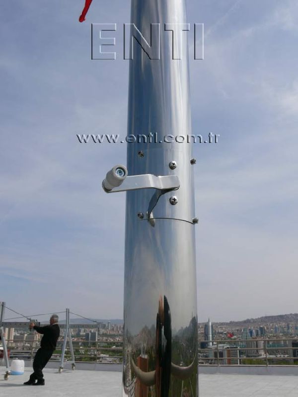 The Stainless Steel Flag Poles are produced of AISI 304 and AISI 316 quality stainless steel tube and again stainless steel reducer fitting is used at the combining of poles. The stainless steel flag poles have the endless rotating top system turning around 3600, the internal halyard drum of which the patent is owned by ENTI Engineering, the base flange covering rosette and hinged base flange which manufactured by stainless steel. According to the customers demand, the stainless steel poles are polished in our workshop as brush finish and shiny, the stainless steel flag poles which are produced 3m to 13m as standard can be manufactured according to the orders as polygonal and up to 80m tall.