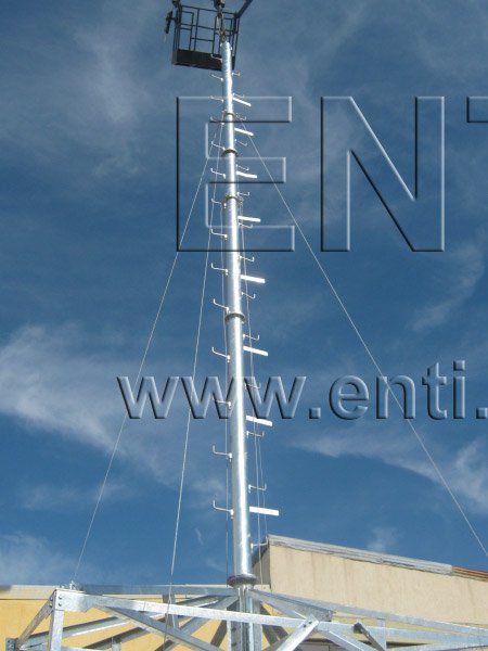 | سلم محمول يمكن وضعه لوصول العمال إلى رأس العمود، وبعد انتهاء العمليمكن إزالته من مكانه |
