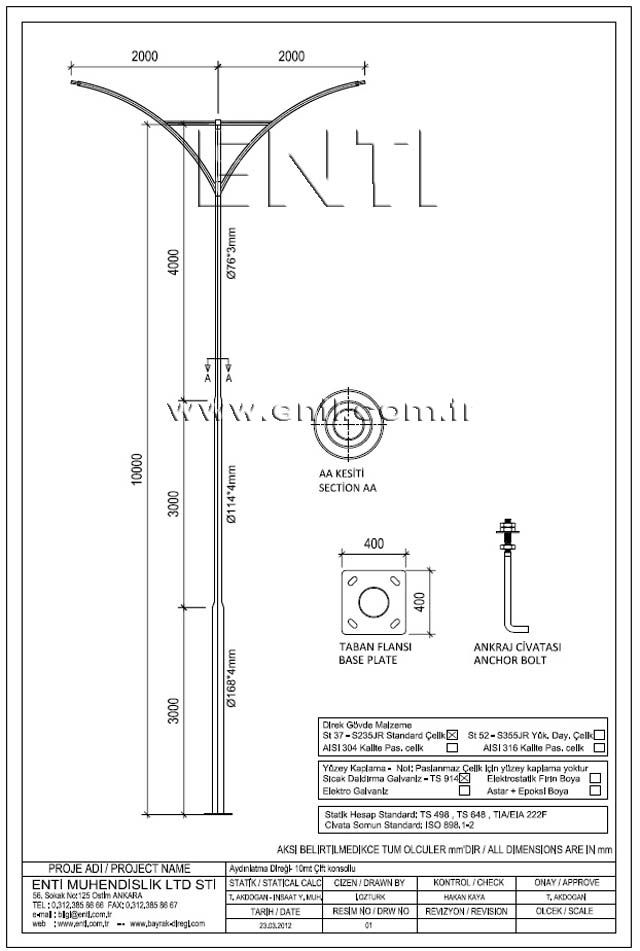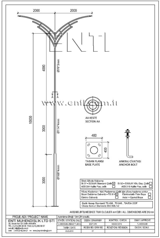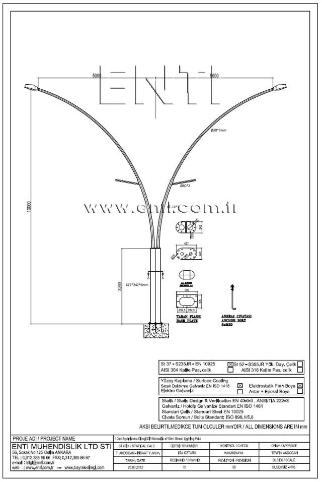 ENTİ Engineering produces lighting poles standing very smart as visually, providing an efficient illumination and assisting to support architectural infrastructure in addition to polygonal and tubular type enlightening poles.