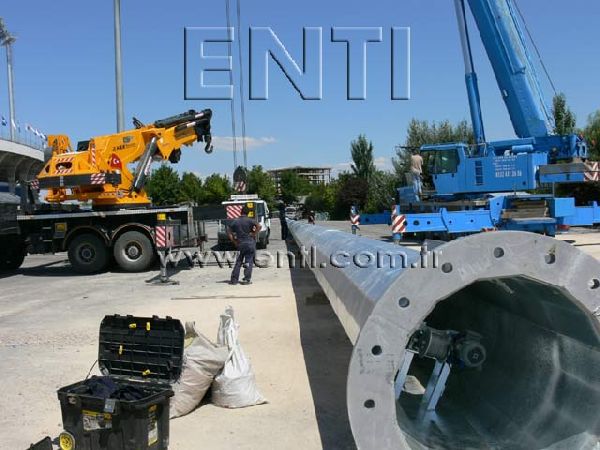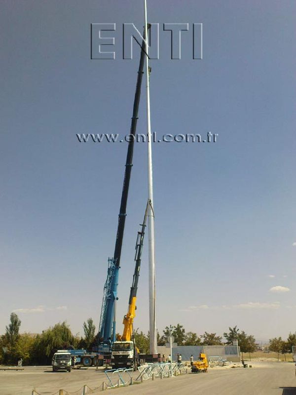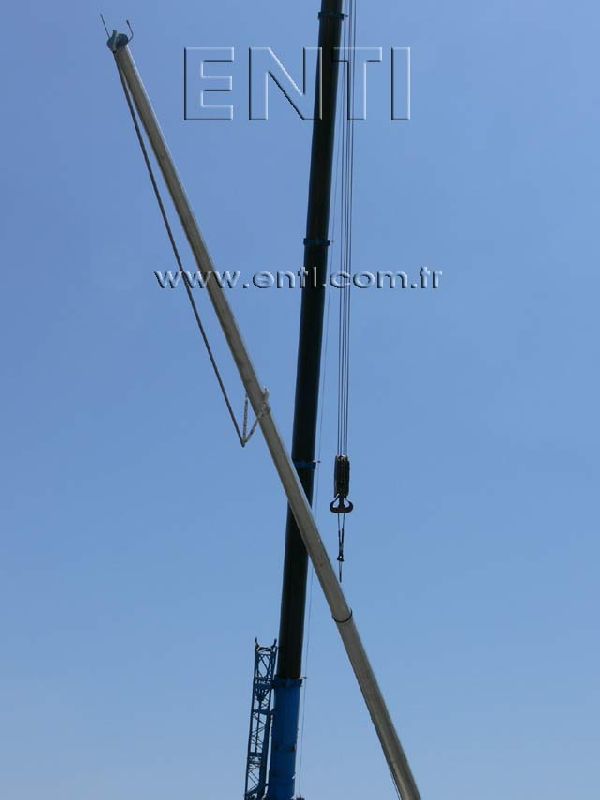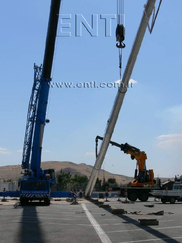 The crane which will be used for mounting may vary depending on the circumstances and the pole. At the normal circumstances, a crane which has minimal boom length of 25 m for the pole of 30 m length is needed. The crane boom may be prolonged up to the 50 m long according to the fields' circumstances.