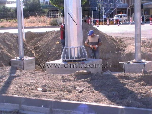 The basement mounting where the pole was incorporated with the ground, may be made by the man force for small poles but for big poles there may be needed a crane.
