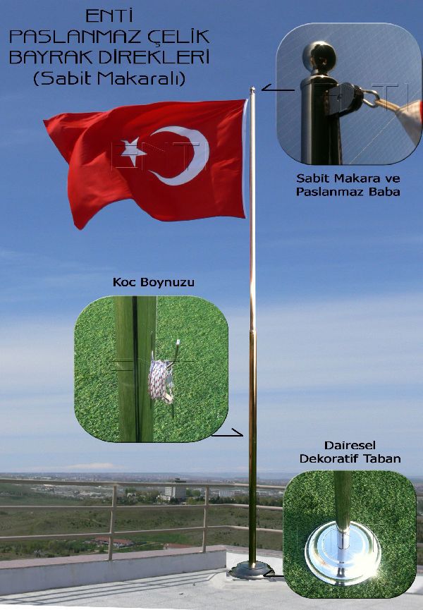 | Direk Tipi | : Paslanmaz Çelik Bayrak Direklerimiz paslanmaz borular redüksiyon ile birleştirilerek imal edilmektedir |
